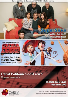 Para assinalar o Dia Mundial do Teatro (27 de Março), o Centro das Artes do Espectáculo acolheu de, 23 a 26 de Março, a oitava edição de “Um Cheirinho a Teatro”, mostra de teatro de e para escolas. Esta actividade, parceria entre o Município de Sever do Vouga, designadamente do CAESV e os dois agrupamentos de escolas do concelho ( Escola Básica e Secundária de Sever do Vouga ), contou com a participação em palco de muitas crianças e jovens de Sever do Vouga, assim como de outros concelhos limítrofes. Para se juntar a esta actividade, contou-se este ano com a presença em palco da turma de Expressão Teatral e Musical da Universidade Sénior Rotary de Sever do Vouga, que apresentou a peça “Praça do Peixe”, em alusão ao mercado e à faina do mesmo. Os participantes foram: Clube de Teatro da EB23 Sever J. I . Sever Multideficiência Silva Escura J.I Silva Escura Escola Secundária EB23 São Roque EB23 da Branca Universidade Sénior Rotary EB23 Pinheiro da Bemposta J.I. Talhadas EB...